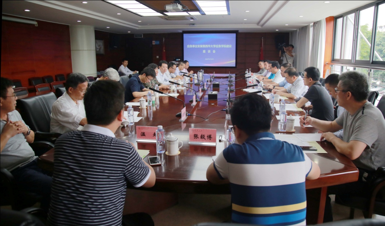 座谈会现场气氛热烈,与会专家肯定了学校在应急领域的成绩及对四川应急产业的贡献,对学校成立应急学院表示祝贺,并结合宜宾长宁地震,共同探讨应急管理事业和学校应急学院发展。
