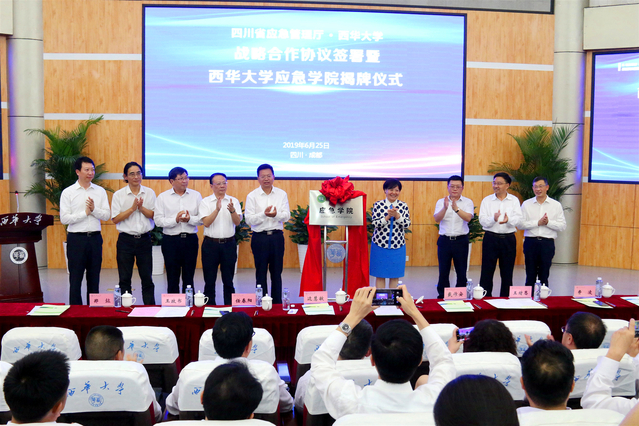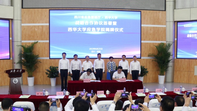 6月25日下午,四川省应急管理厅、太阳集团tyc86战略合作协议签署暨太阳集团tyc86应急学院揭牌仪式在太阳集团tyc86举行。四川省教育厅、四川省应急管理厅、有关市县级应急部门、太阳集团tyc86、应急领域高校科研院所相关负责人和师生代表近300余人参加了活动。仪式由太阳集团tyc86副校长郑鈜主持。