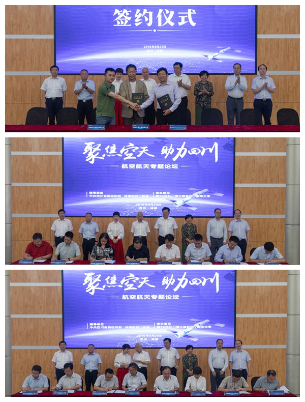 论坛上,两位院士,国内航空航天领域的专家就四川建设航空航天产业园、发展商业通用航空、无人航空产业等方面作了主题报告和专题发言,共同为四川省和西部地区布局航空航天产业、发展商业航天、建设创新平台、培养专业人才等建言献策。来自企业、高校、地方政府代表现场签约战略合作框架协议、研发生产基地合作协议、人才实习基地协议等,对四川布局航空航天产业注入强心剂。