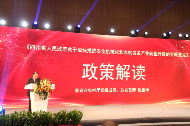 四川省农业农村厅总农艺师陈孟坤解读了《四川省人民政府关于加快推进农业机械化和农机装备产业转型升级的实施意见》。据悉,9月2日,四川省人民政府发布了《关于加快推进农业机械化和农机装备产业转型升级的实施意见》,这是四川省农机化发展史上的一件大事,陈总将文件内容概括为“12316”,要求把握“一个总基调”(补短板、强弱项、促协调);明确“两个阶段性目标”,到2025年全省农机化水平达到70%以上,在国内同类地区处于领先地位 ;聚焦科技、机制、政策“三个创新”;落实好加快推进农业机械化和农机装备产业转型升级的16条政策措施,文件的出台对推动四川省农机装备产业高质量发展,农机化向全程全面高质高效转型升级具有重大意义。