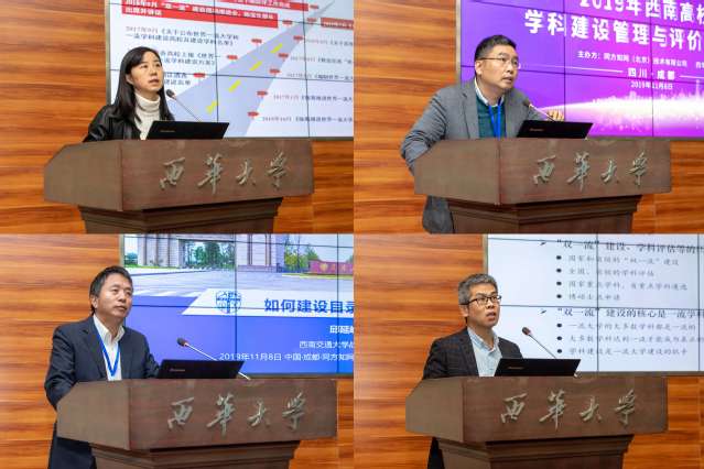 四川大学“双一流”建设与质量评估办公室发展研究中心副主任尹怡作了题为《“双一流”建设及川大实践》的主题报告,从“双一流” 内容、要求等方面解读了“双一流”建设政策文件,并分享了四川大学在“双一流”建设实践中的建设方案、特色案例等内容。