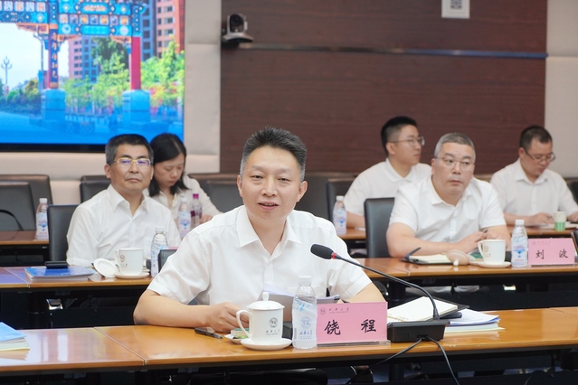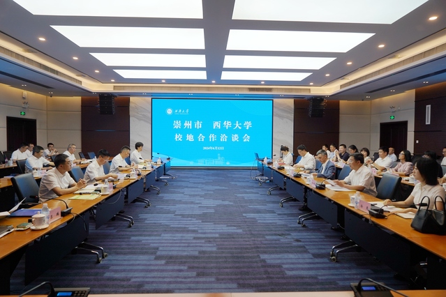 6月12日,崇州市委书记陈茂禄,市委副书记、市长饶程,市委常委、常务副市长李明蔚,天府粮仓产业园党工委副书记、管委会主任俞冬梅一行来校洽谈校地合作事宜。座谈会在办公楼101会议室召开,党委副书记、校长李秋实,党委常委、副校长郎方年,副校长邵永波,党委常委、宣传部部长王莉,陶智院士团队徐燕出席会议。会议由郎方年主持。