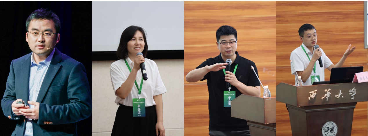 华东师范大学姜雪峰教授(左一)、成都先导药物开发股份有限公司程学敏总监(左二)、广州国家实验室廖矿标研究员(右二)、康宁连续流制药有限公司何涛(右一)分别作大会报告