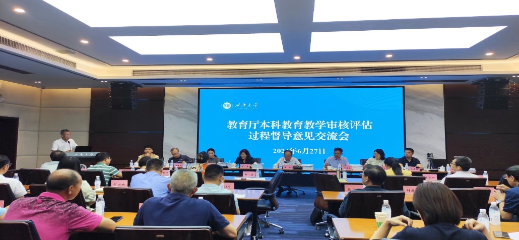 6月27日上午,教育厅总督学傅明、成都理工大学副校长曾英、四川师范大学教务处处长侯帮品、成都信息工程大学管理学院院长宋雪茜等专家来我校进行本科教育教学审核评估过程督导。会议在办公楼101会议室召开,校党委书记刘树根,校党委常委、副校长费凌,各机关职能业务部门主要负责人以及各学院书记、院长参加此次会议,会议由费凌主持。