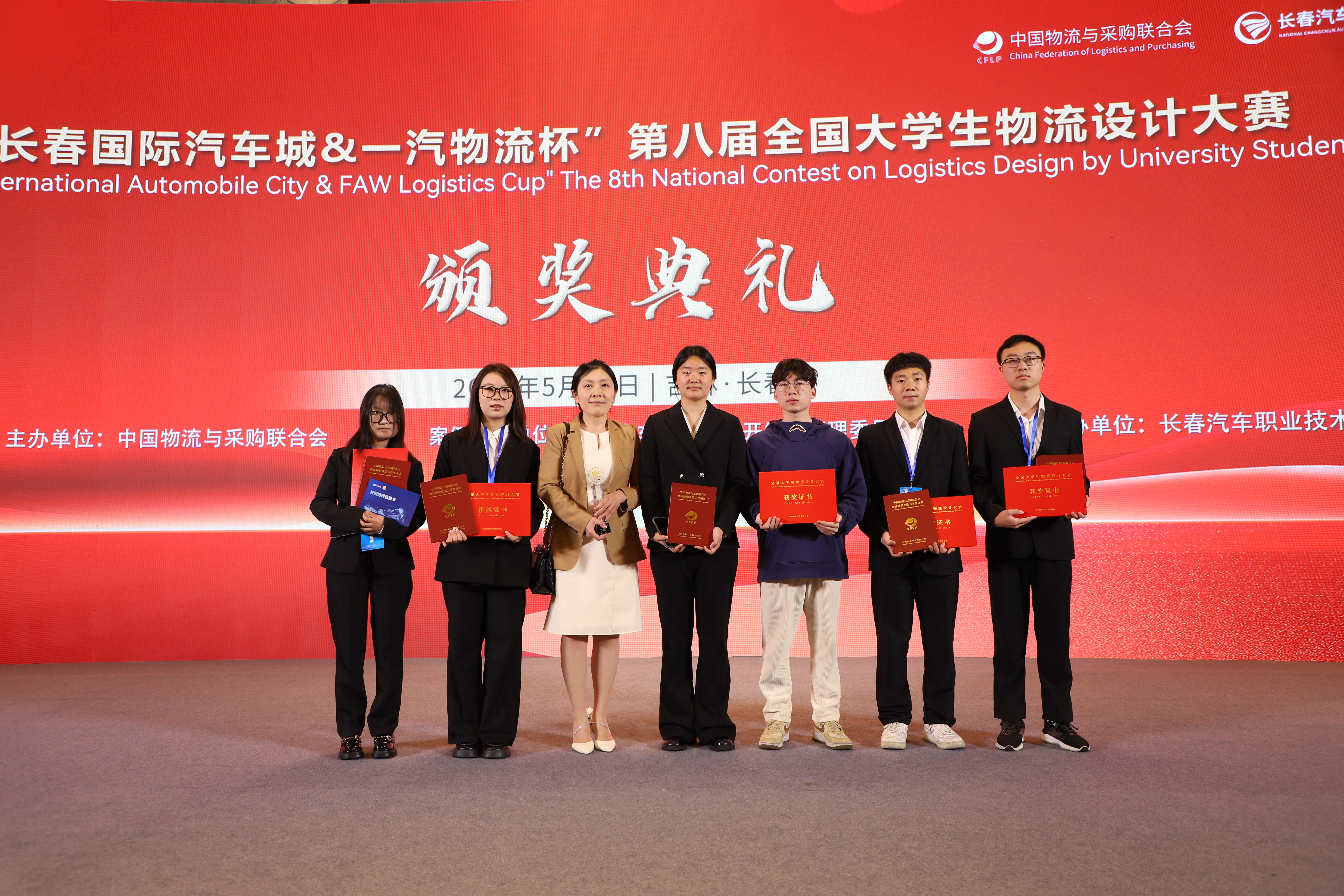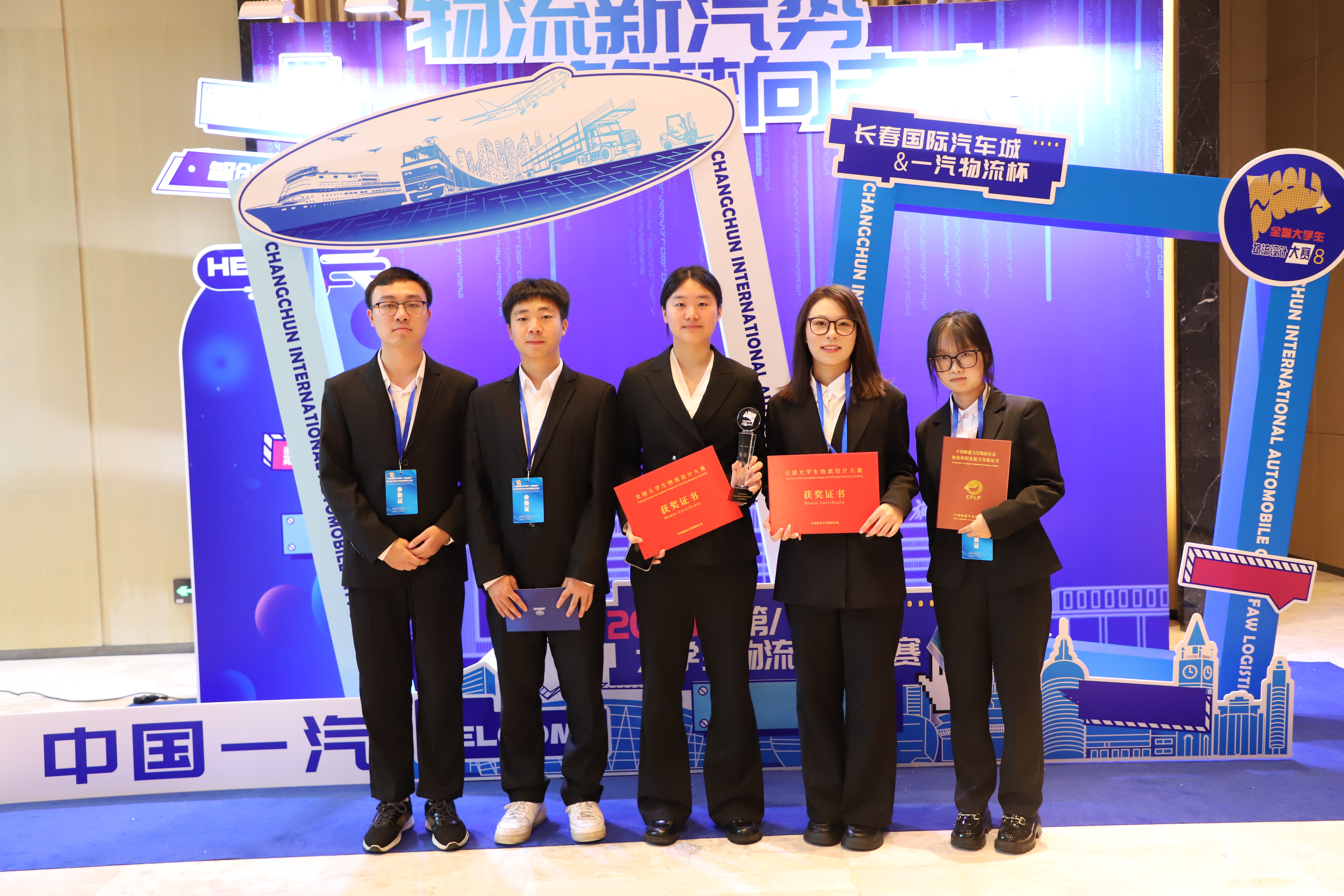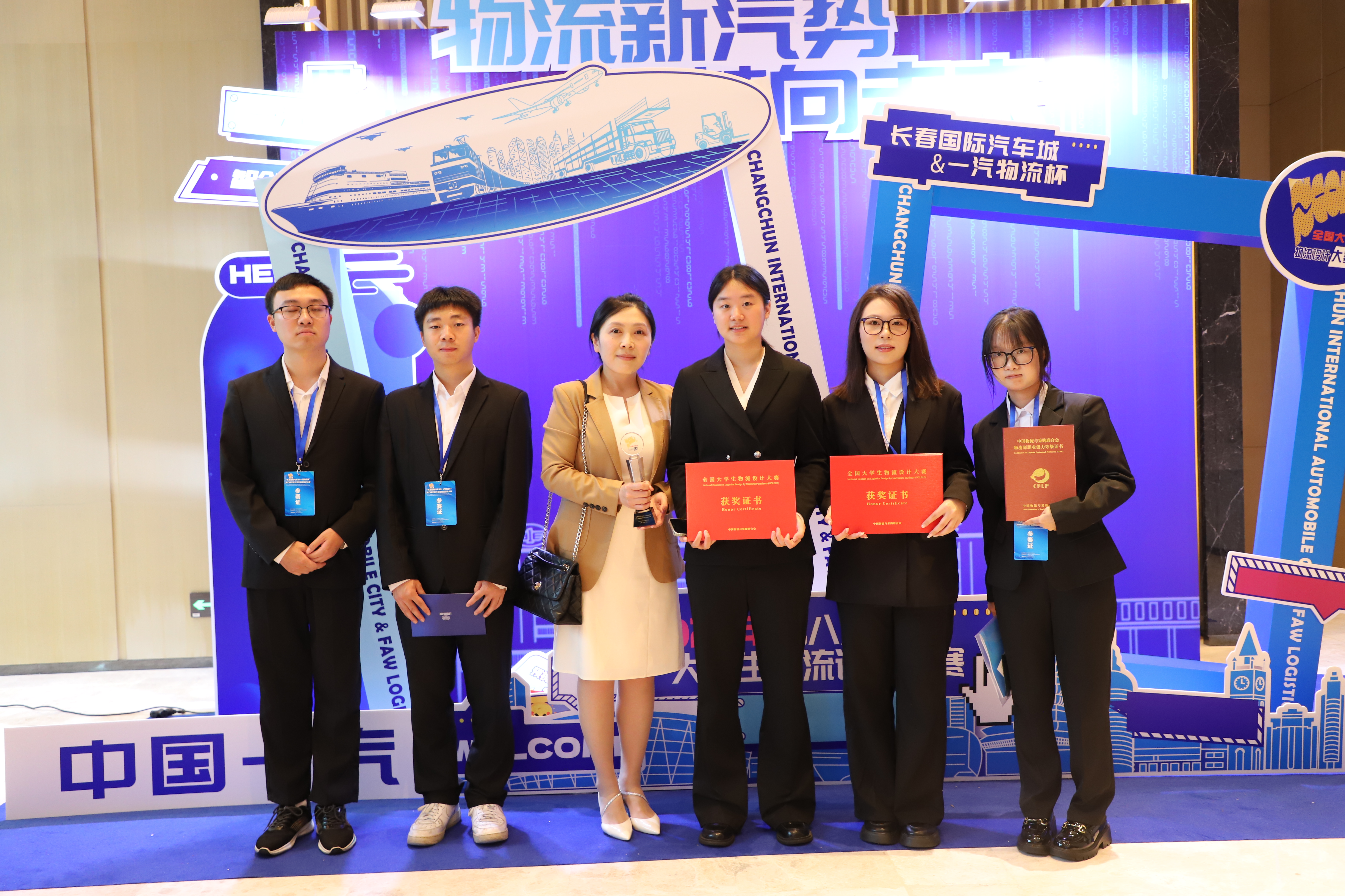 近日“长春国际汽车城&一汽物流杯”第八届全国大学生物流设计大赛决赛在长春举行。本次大赛历经7个月,共有699支代表队参赛,参与师生近5万人,经过初赛、复赛、决赛,决出一等奖18项、二等奖33项、三等奖39项,最佳组织奖9项。我校管理学院物流工程专业宁芝、崔安琪、万晓燕、张世秋、胡平五名同学组成的“太阳集团tyc86深藏blue队”在段华薇教授和谢寒副教授精心指导下,以作品《数智一汽,物网链通——整车物流全流程优化方案》从全国各高校699支参赛队伍中脱颖而出,成功斩获全国一等奖,参赛队员均获得“校园招聘直通卡”和“物流师”资格证。