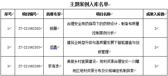 此次入库的案例涉及《合理安全用药指导下的药物设计、制备和质量控制案例分析》《建筑业转型升级与高质量发展下智能建造与创新管理》《美丽乡村宜居建设,地材资源合理定价——川藏地区地材资源分布及价格确定机制探索》等主题案例项目,入库案例的7个案例均具有时代性、引领性、学理性。下一步,学校将持续开展主题案例征集,鼓励专家学者扎根中国实践,讲好中国故事、传播中国声音,开发具有良好学术容量、高学理含量的高水平原创案例,为提高学校实践创新型人才培养质量作出更大贡献。