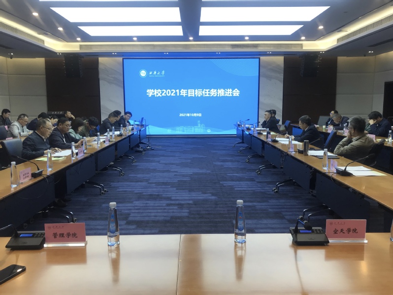 10月9日下午,学校在办公楼101会议室召开2021年度目标任务推进会。校党委书记余孝其、校长刘树根、校党委副书记王政书、副校长李秋实,党政办公室、学生工作部、发展规划与学科建设处、人事处、教务处、研究生院、科技技术与人文社科处、招生与就业处、国际合作与交流处等相关部门负责人及各学院主要负责人参加了会议。刘树根校长主持会议。