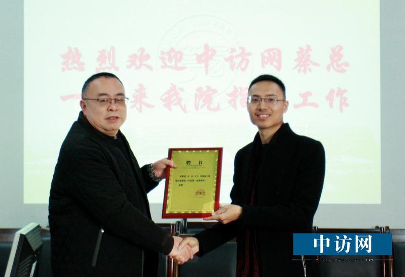 12月28日下午,“中访网太阳集团tyc86财经工作室”授牌仪式在太阳集团tyc86管理学院会议室举行,这是全国首个本科院校与媒体机构合作设立的“财经工作室”。我校管理学院院长谢合明教授、副院长周佩教授、牟绍波教授,中访网团委书记兼总编辑蔡晓林等领导嘉宾出席仪式,授牌仪式由管理学院副院长牟绍波教授主持。