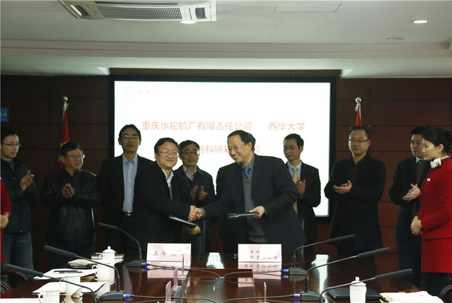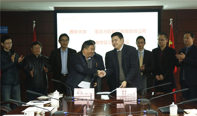 会上,重庆水轮机厂有限责任公司董事长周德良和副校长费凌签署了产学研战略合作协议;重庆水轮机厂有限责任公司综合部副部长罗定旗和教务处处长刘保县签署了教学实习基地协议;重庆水轮机厂有限责任公司副总经理、总工程师王建明和能源与动力工程学院副院长宋文武签署了科研项目合同;教务处处长刘保县为教学实习基地授牌。重庆机电控股(集团)公司副总裁赵自成,重庆水轮机厂有限公司董事长周德良,重庆机电装备研究院副院长黄智宇,校长刘清友,副校长费凌,能源与动力工程学院院长刘小兵、副院长宋文武共同为流体机械工程研究中心和水力机械及其系统研究生工作站揭牌。