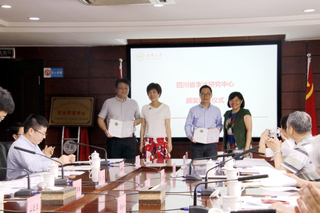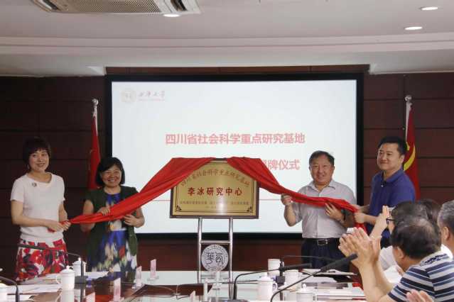 四川省社科联规划办副主任赵静宣读了中共四川省委宣传部、四川省教育厅、四川省社会科学界联合会关于认定“李冰研究中心”等为四川省社会科学重点研究基地的通知。我校发展规划部张力部长宣读了四川省李冰研究中心组织机构名单。随后,四川省社科联规划办副主任赵静、中共都江堰市委宣传部常务副部长廖鹏、四川省都江堰管理局副局长戴建康、校党委书记边慧敏为四川省李冰研究中心揭牌。