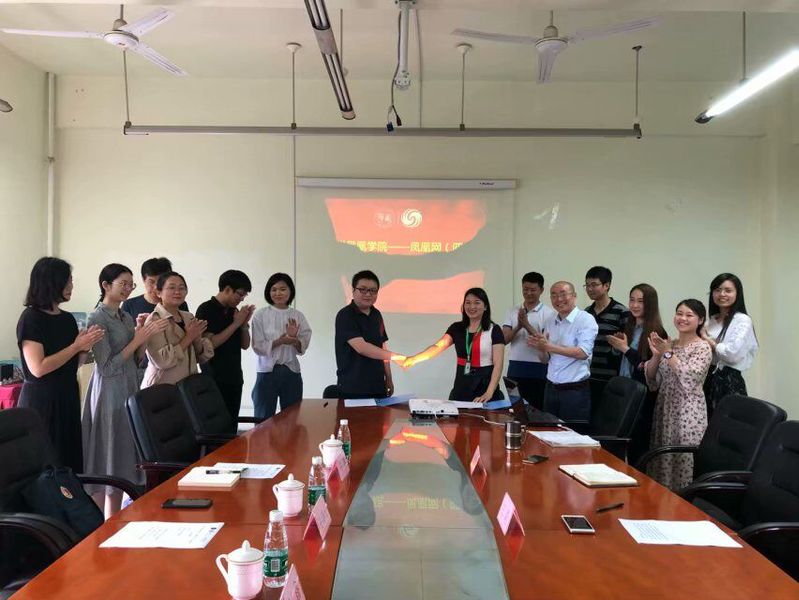 5月17日,我校凤凰学院与凤凰网(四川)在6D301会议室签订战略合作协议。凤凰网(四川)总编辑王诗元、凤凰网(四川)编务主编王萍,凤凰网(四川)直播频道高级编辑刘鑫,凤凰学院党总支书记兼副院长王莉、党总支副书记兼副院长郭忠林及部分师生代表参与此次签约仪式。会议由学院党总支书记王莉主持。