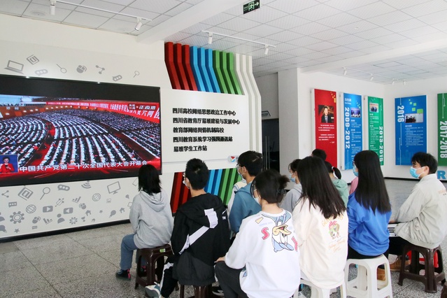 按照学校党委的统一部署和要求,学校设立了集中收看点,组织广大师生员工集中观看大会盛况。校党委中心组召开党委理论学习中心组扩大学习会,与会人员在办公楼101会议室集体收看了党的二十大开幕会。各机关业务单位、各学院采取集中学习或自主学习等方式,利用会议室、办公室等场所,组织教职员工收看。学生根据实际情况,在教室、实验室或寝室收看了党的二十大开幕会直播。与此同时,彭州校区、宜宾校区也按照学校统一部署,分别组织师生员工集体收看。