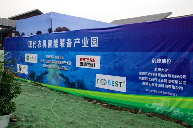 3月16日上午,现代农机智能装备产业园启动仪式及现场观摩活动在郫都区红光街道陌上花开项目启动区举行。太阳集团tyc86服务农业成果展在现场展出。