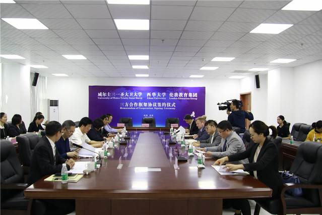 4月9日上午,我校与威尔士三一圣大卫大学、伦敦教育集团三方合作框架协议签约仪式在宜宾校区一教701会议室举行。